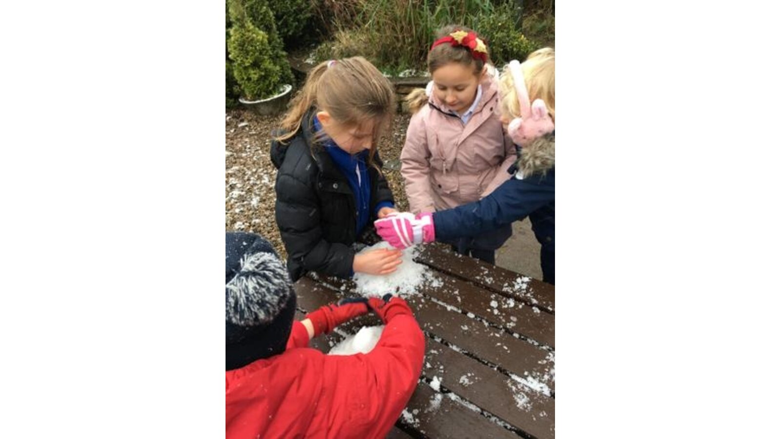 Class 2 have enjoyed playing in the snow building mini snowmen!
