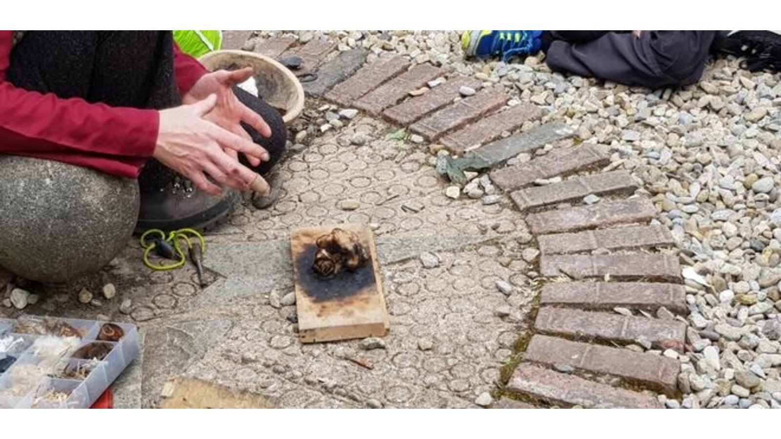 Art work, wooden bead jewellery and fire making ( using fungi and animal poo! ) were all explored during the afternoon.