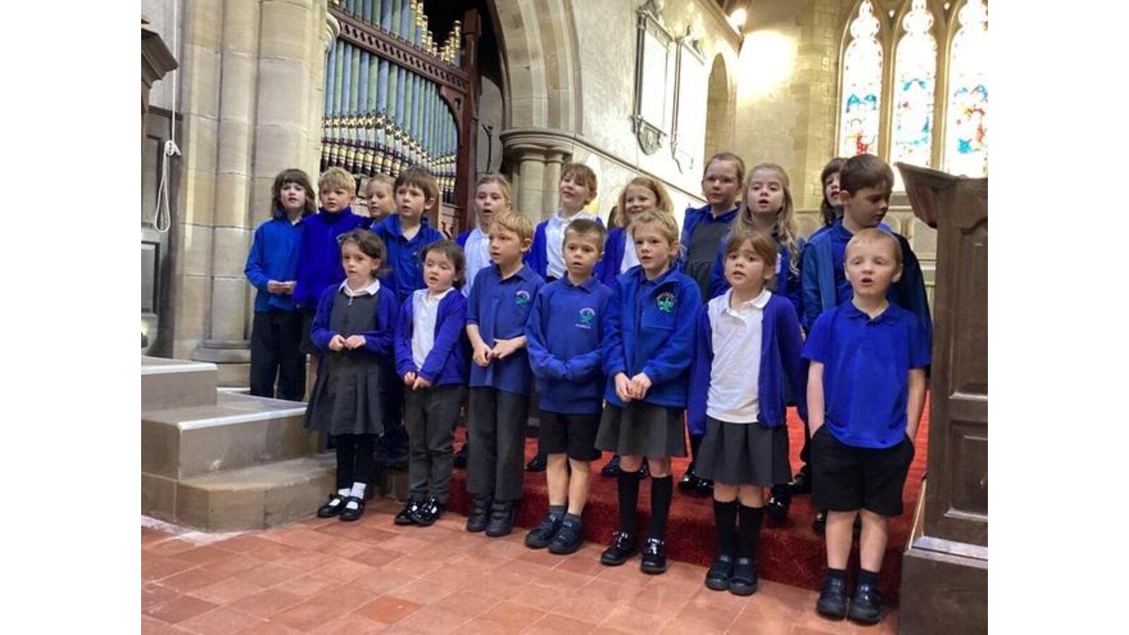 Birch Class singing 'Because It's Harvest Time' in church for our Harvest Festival.