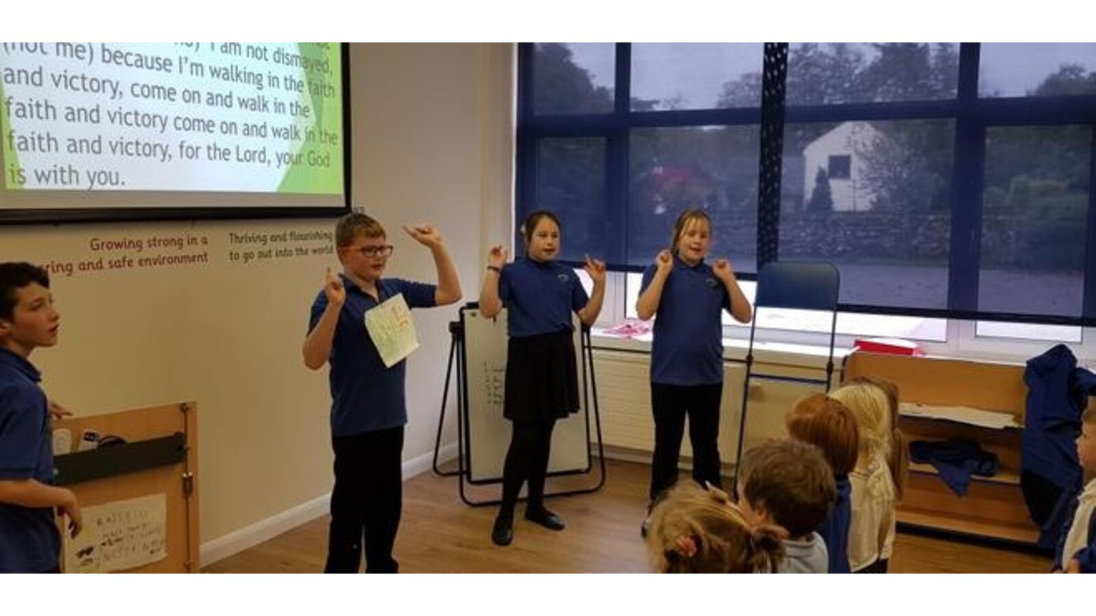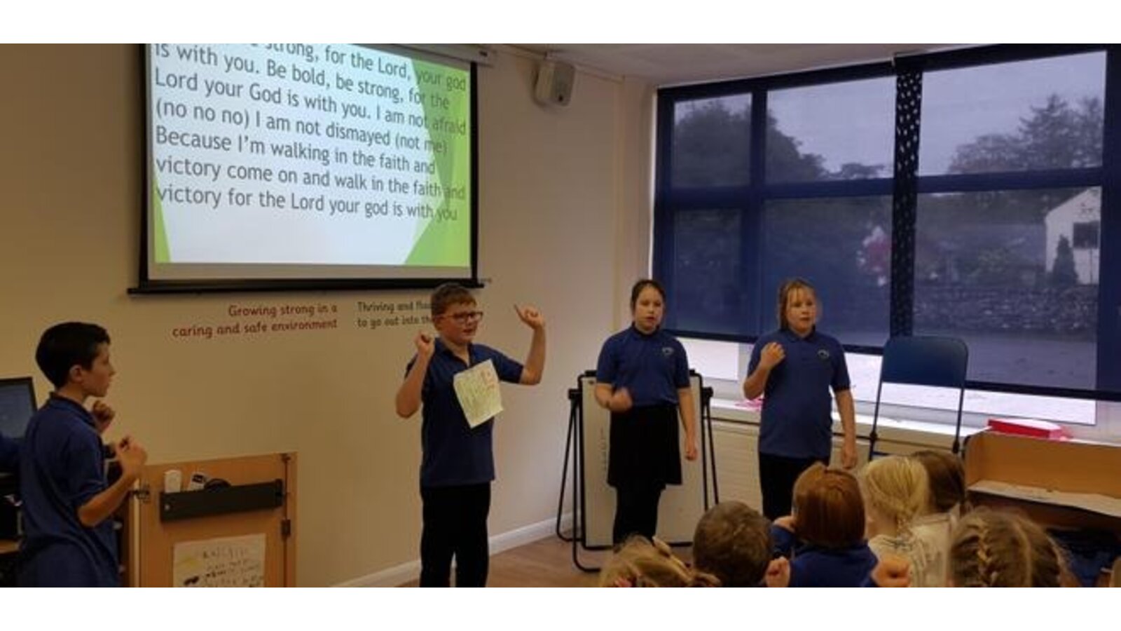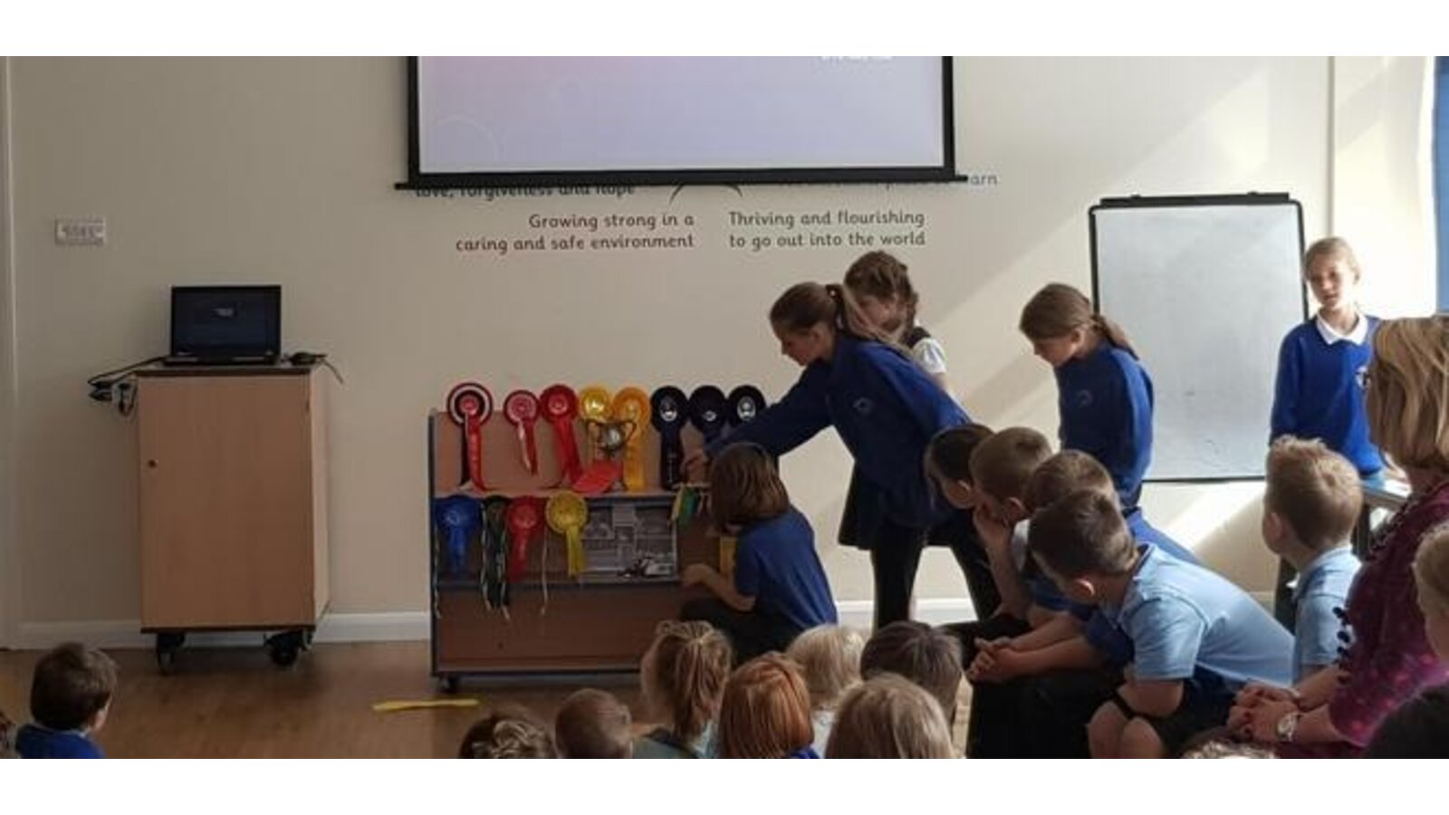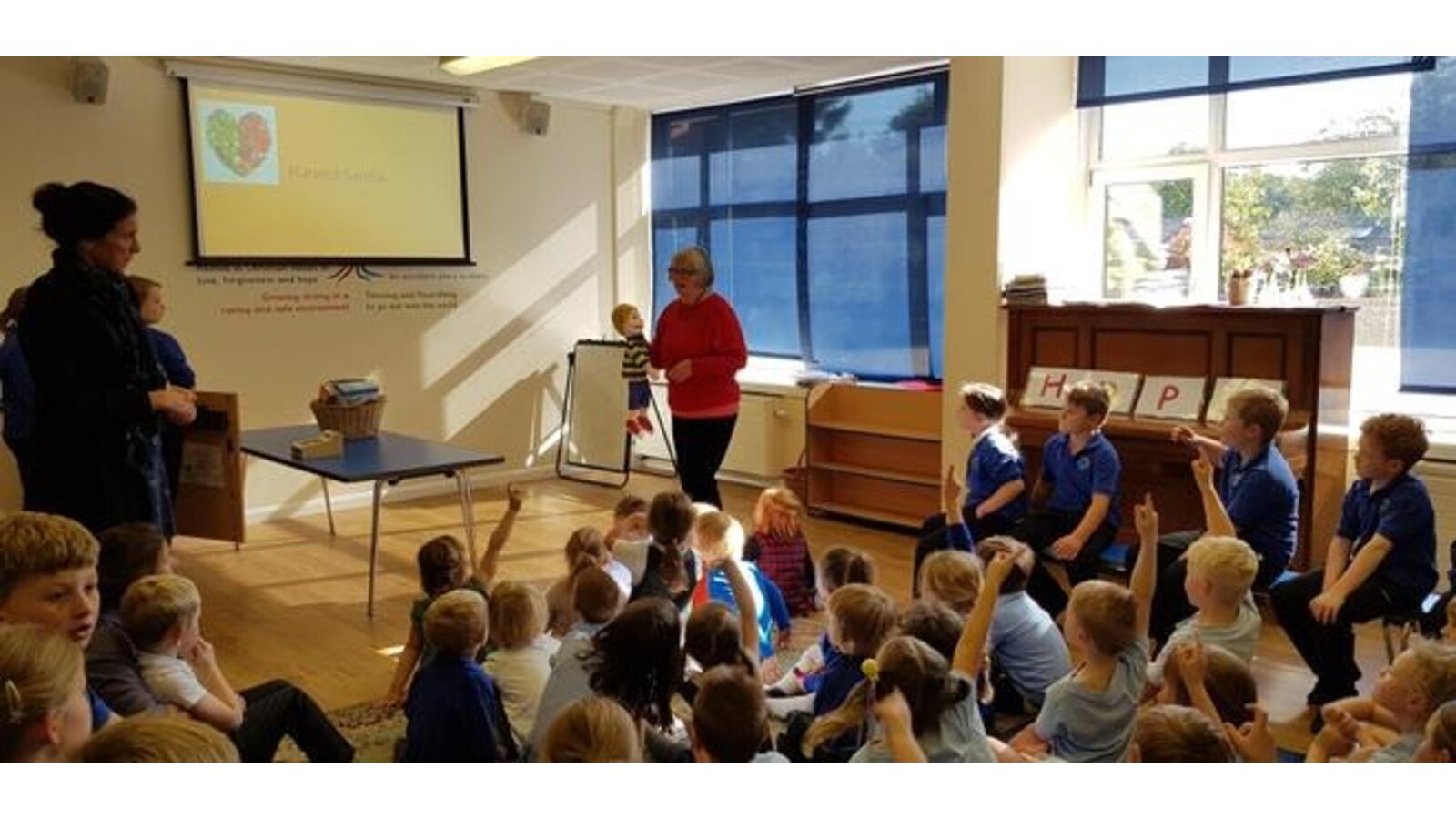 19.9.19 The girls delivered a fun packed assembly on Competition, being fair and being a good sport if you don't always win: and Hope, how to do your best and hope to improve another time. This included a play and a quiz with prizes. Worship finished with everyone singing ( and dancing) along to The Proclaimers 500 miles and a lovely prayer written by the girls.