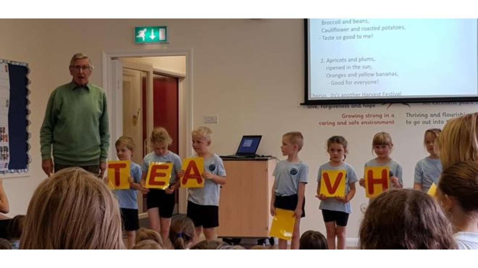 21.11.2019 An exciting worship about Healthy Eating, which included a short play, a word search (competitive parents and grandparents also taking part!) a song, a healthy food hunt around the hall by some younger pupils in school and a prayer.
