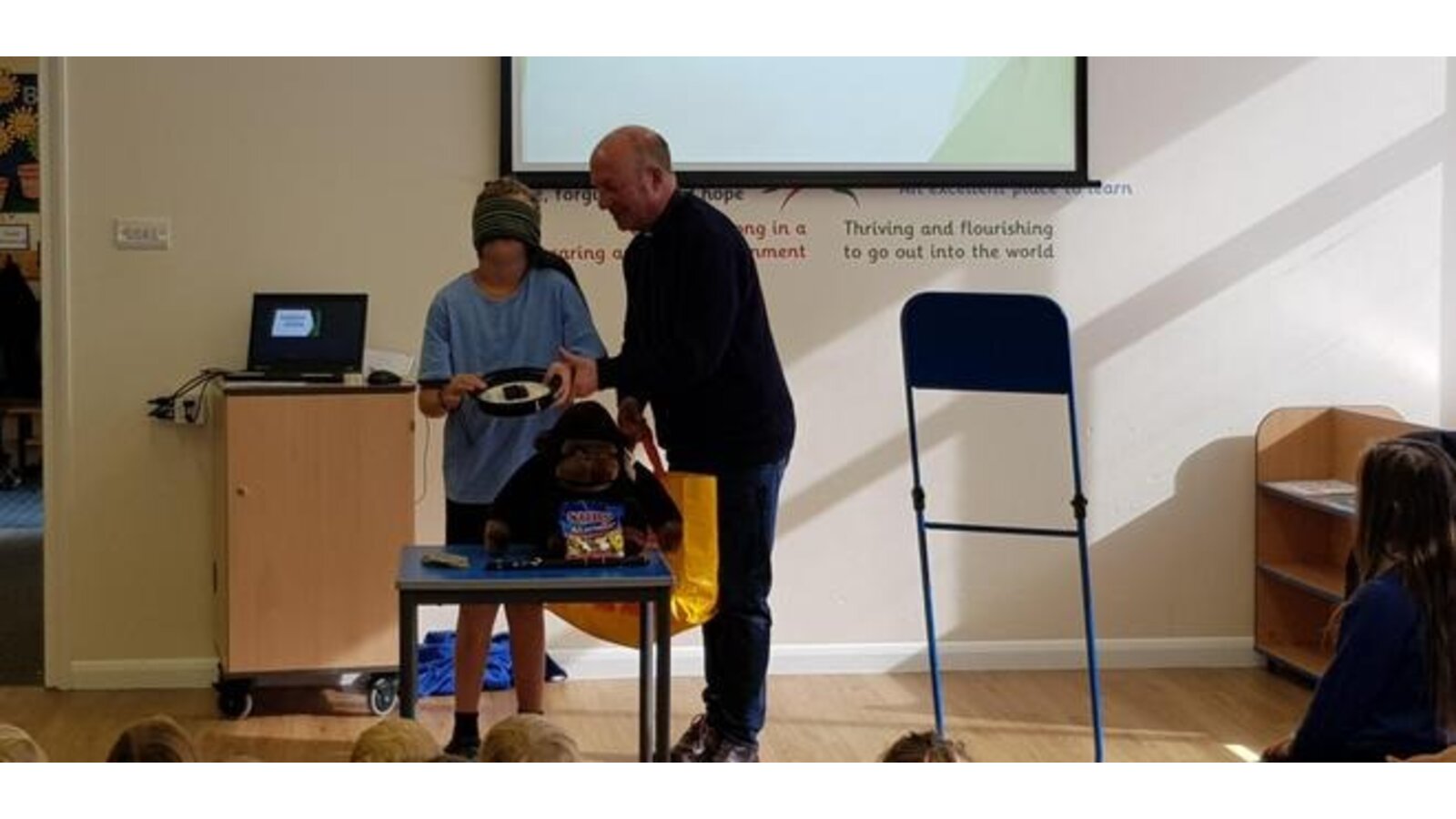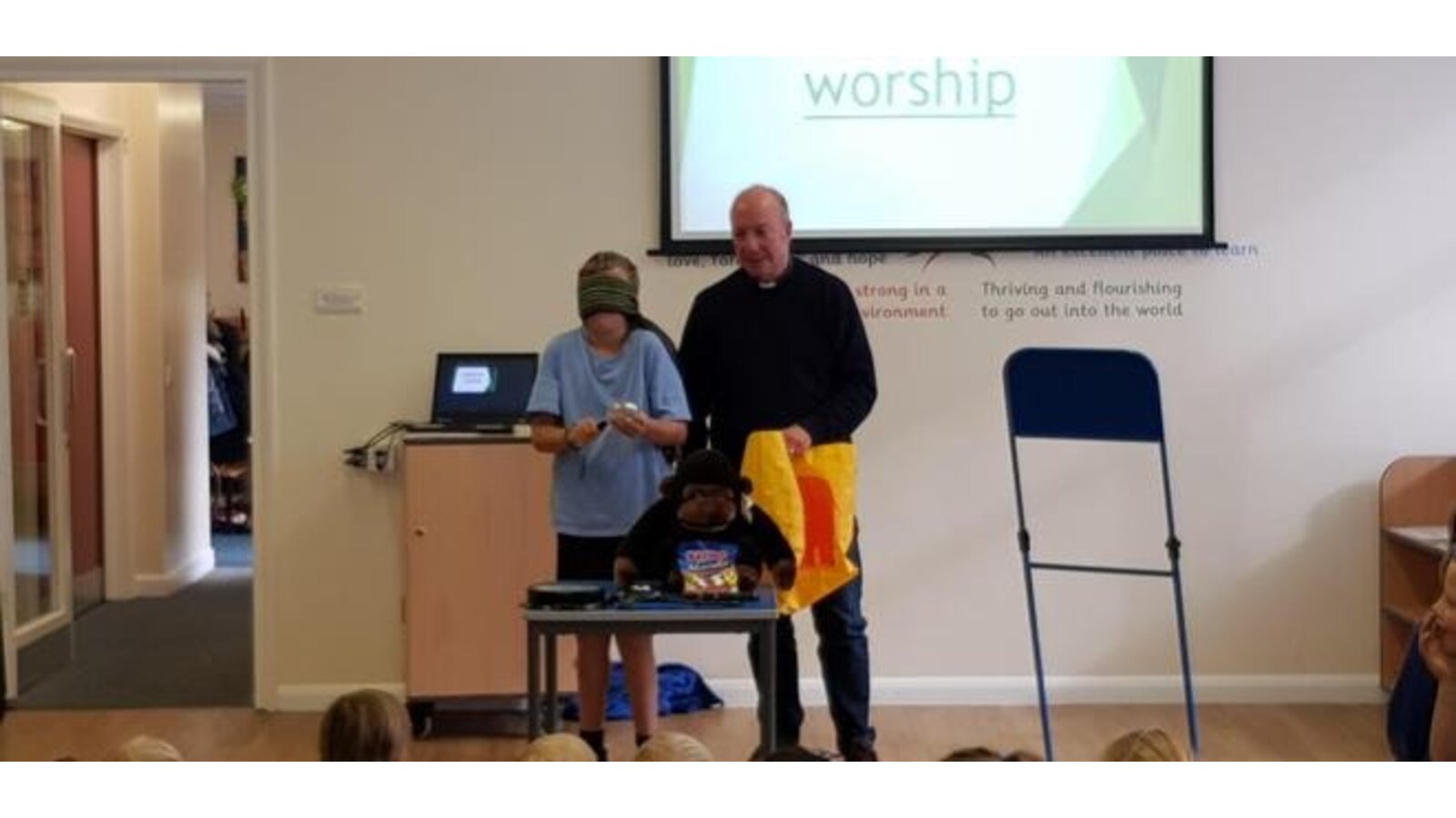 9.10.19 Two volunteers from class 4 assisted Reverend Alun today. Blindfolded they had to guess items from Reverend Alun's bag. It proved tricky and involved more than just guessing by feel ( the ticking clock ). We all agreed that it was much easier to see the items than guess blindfolded. alun reminded us that God is always with us even though we can't see him.