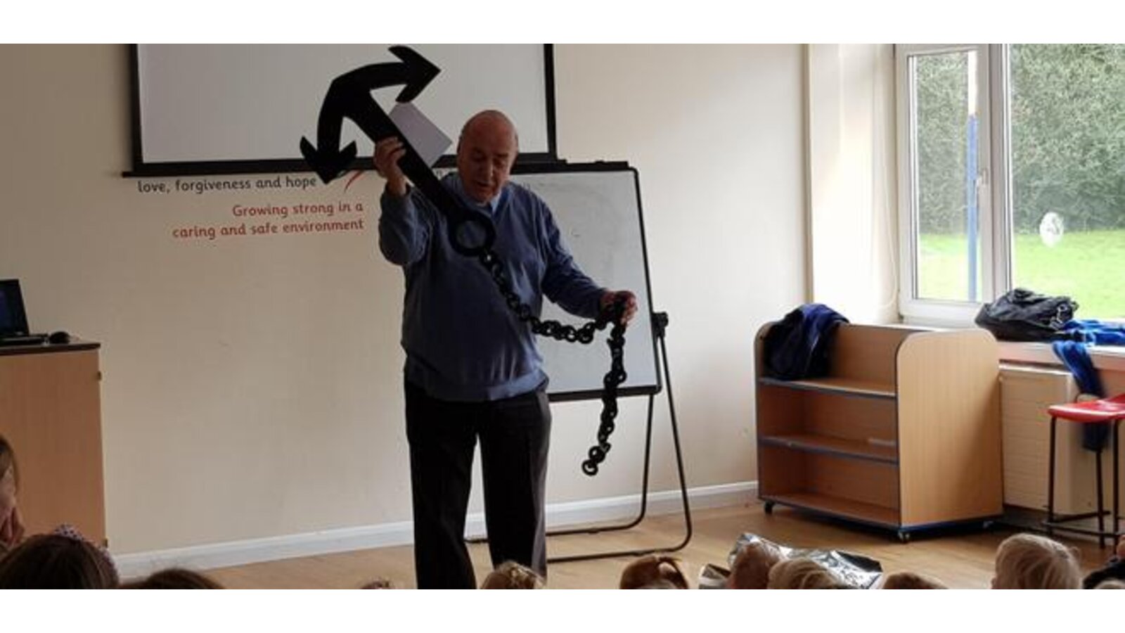 18.9.19 Reverend Ian lead our collective worship today by showing us an anchor ( not a real one).