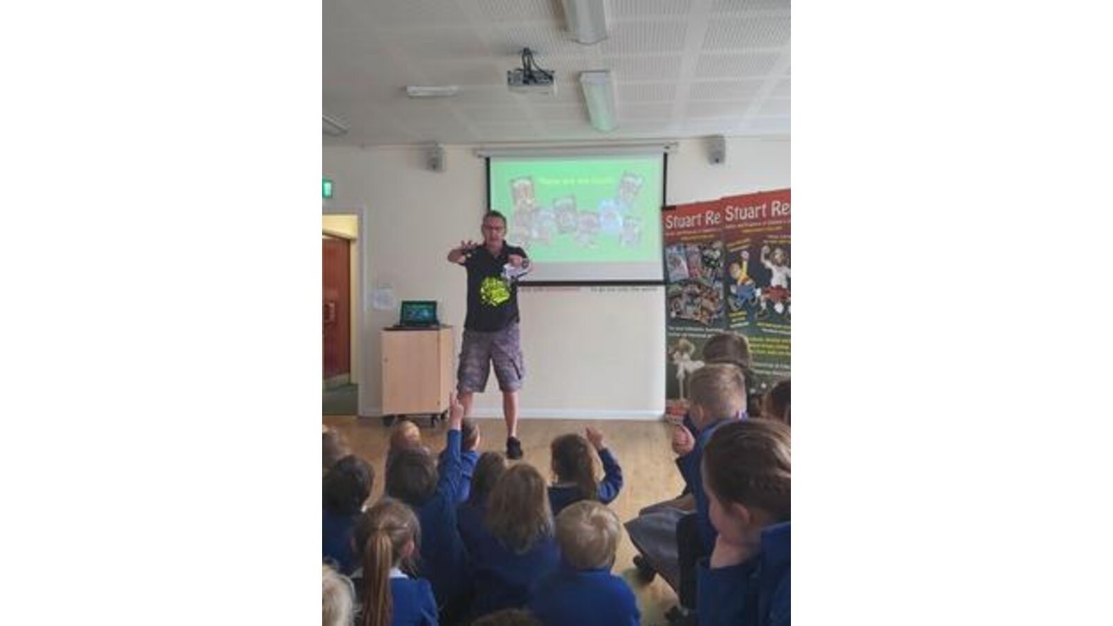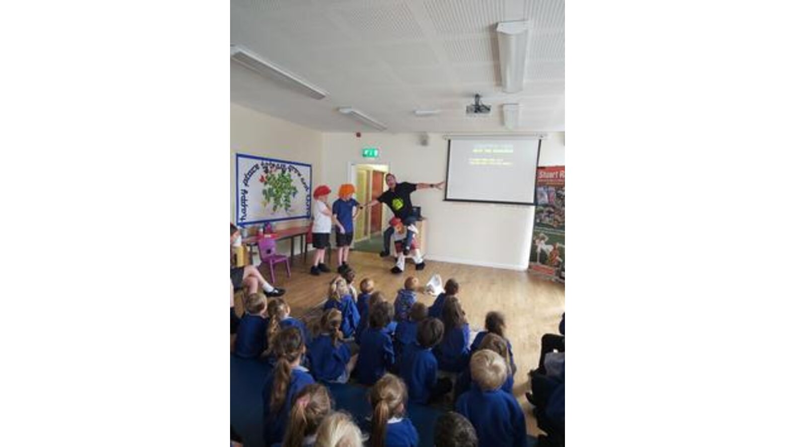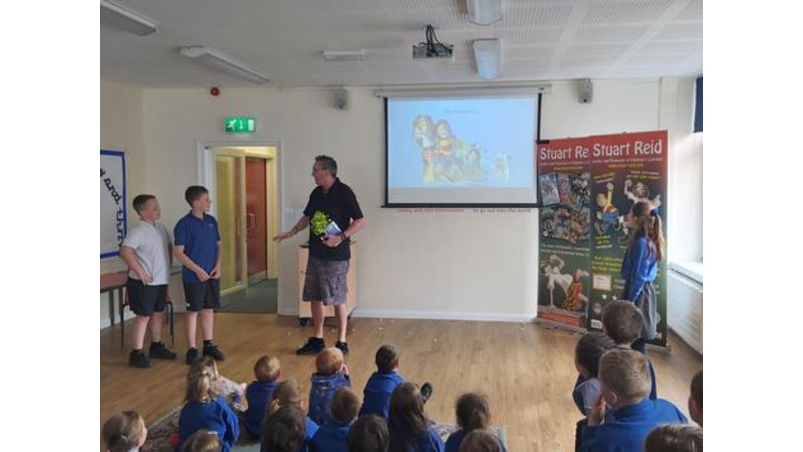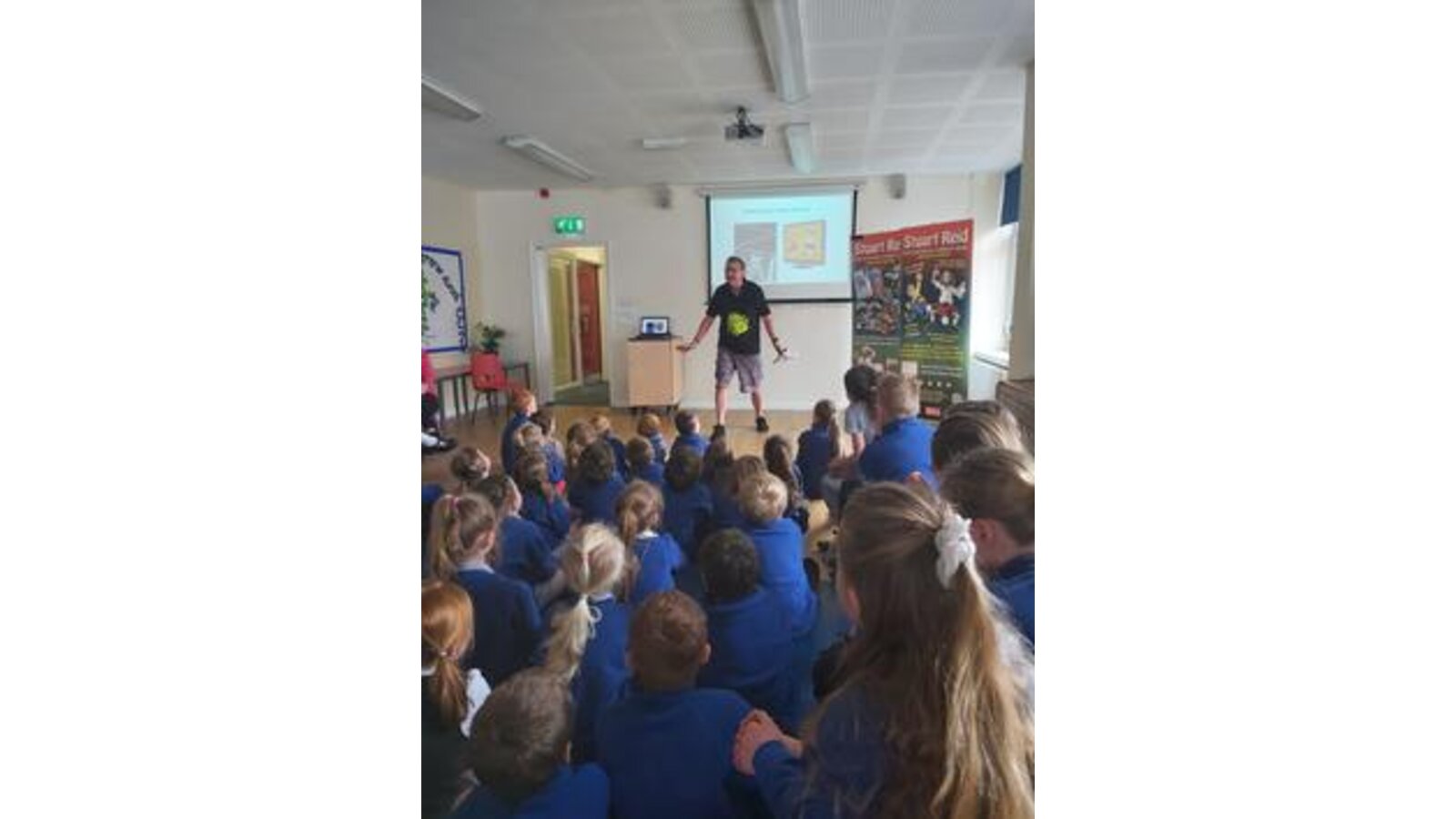 WOW! What a start to a Friday morning!! Stuart Reid a children's Scottish Author visited us for the day. He started the day with an energetic, fun filled book reading and story sharing that gripped the whole school from the youngest to the oldest!!! What a breath of fresh air and injection of energy into the beginning of the Summer term. Our bellies were literally aching with laughter!