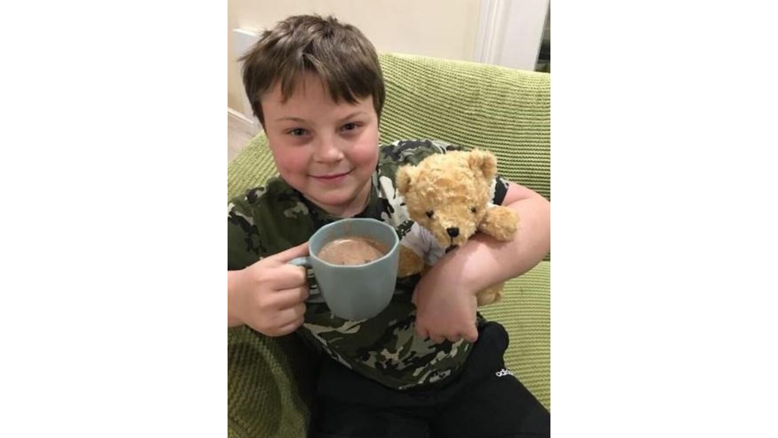 Teddy Tim is enjoying his fair trade hot choc- will he go to bed after the sugar hit?