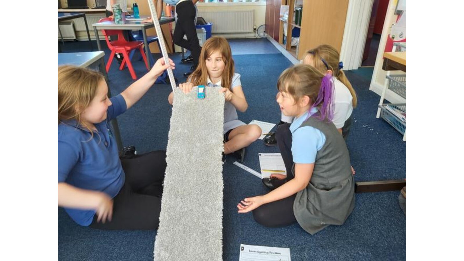 In science, Class 3 enjoyed investigating the effects of friction. They used ramps covered in different surfaces. They slowly lifted each ramp to see how high they could lift each one before their vehicle moved.