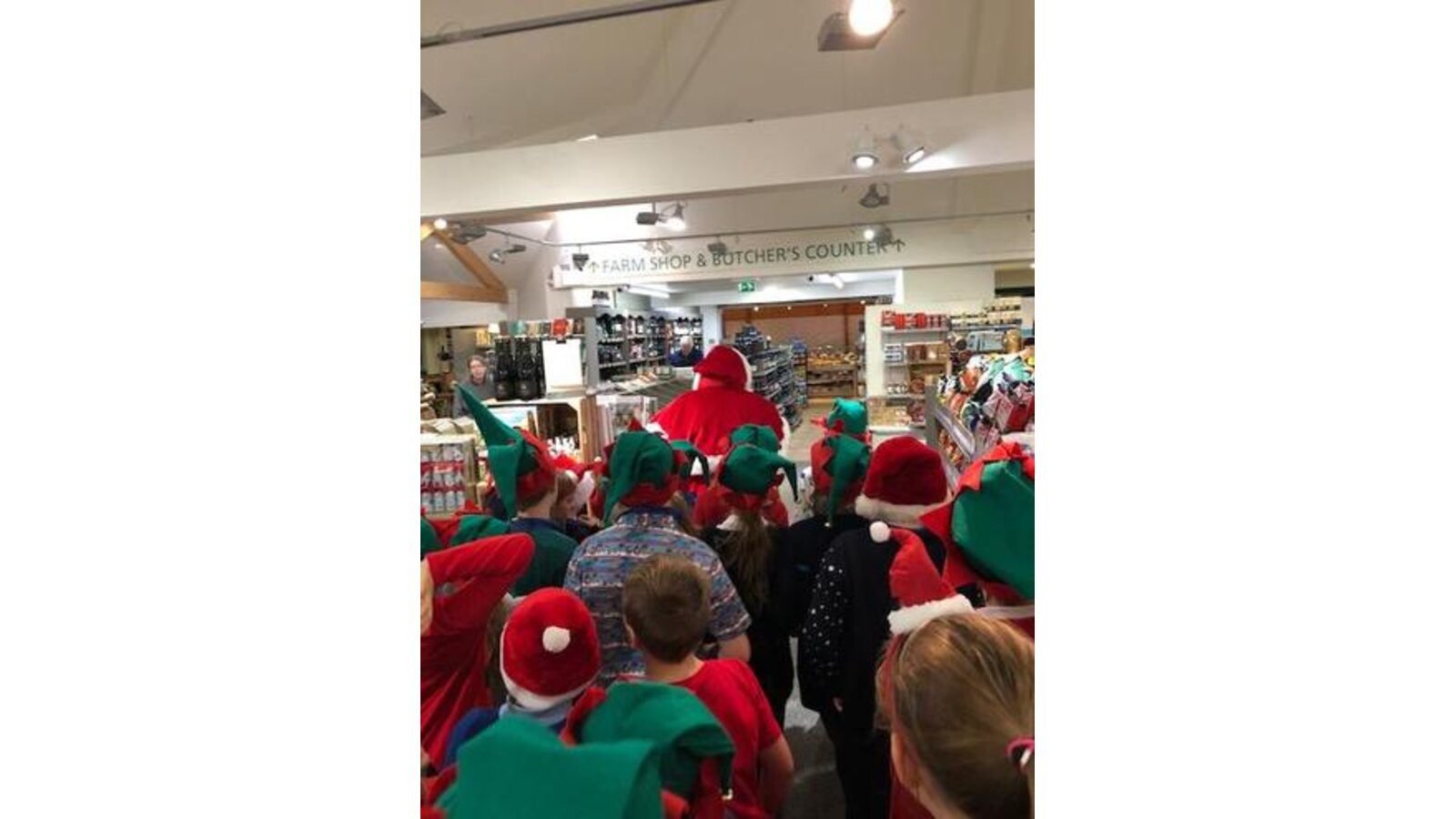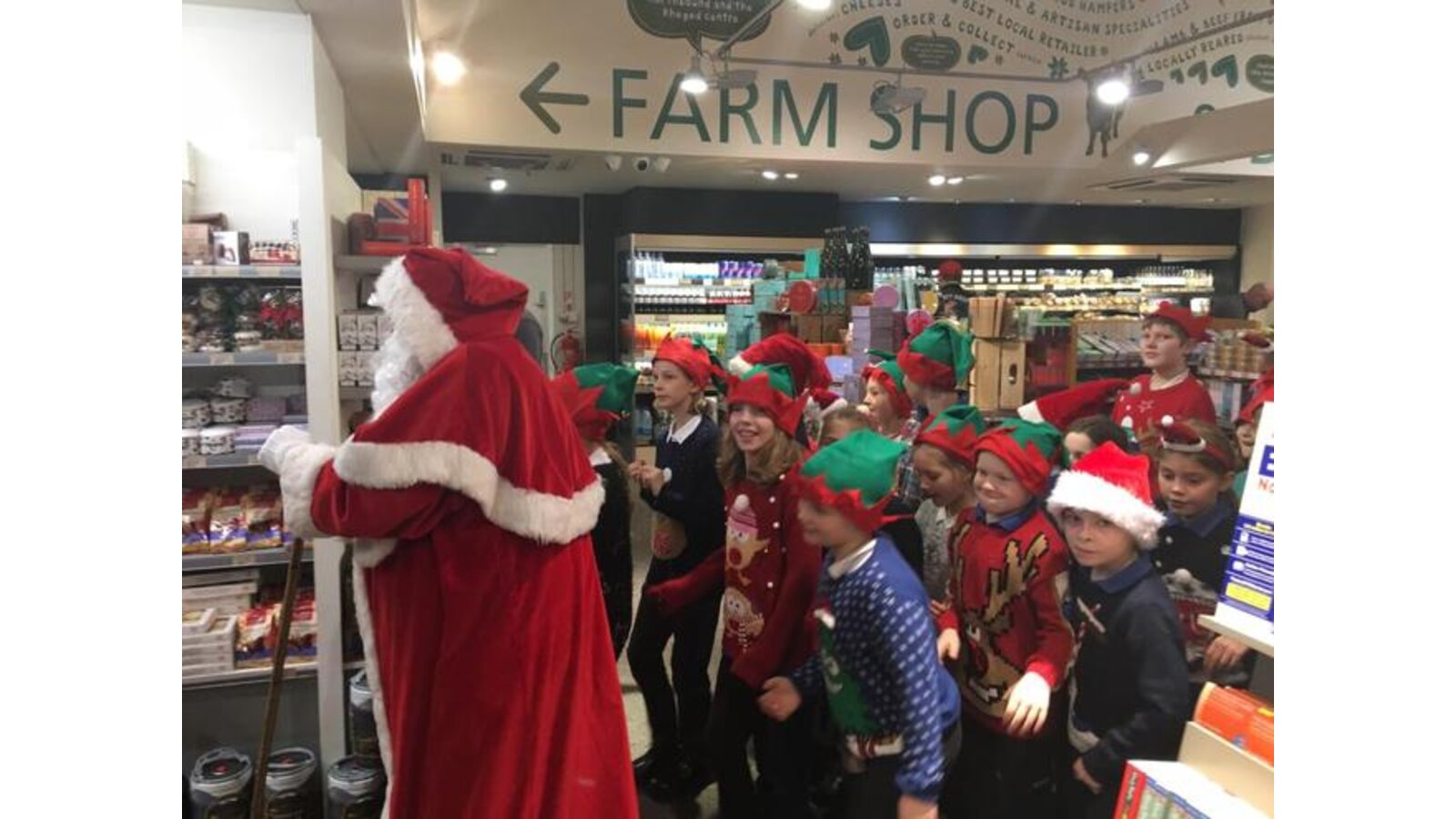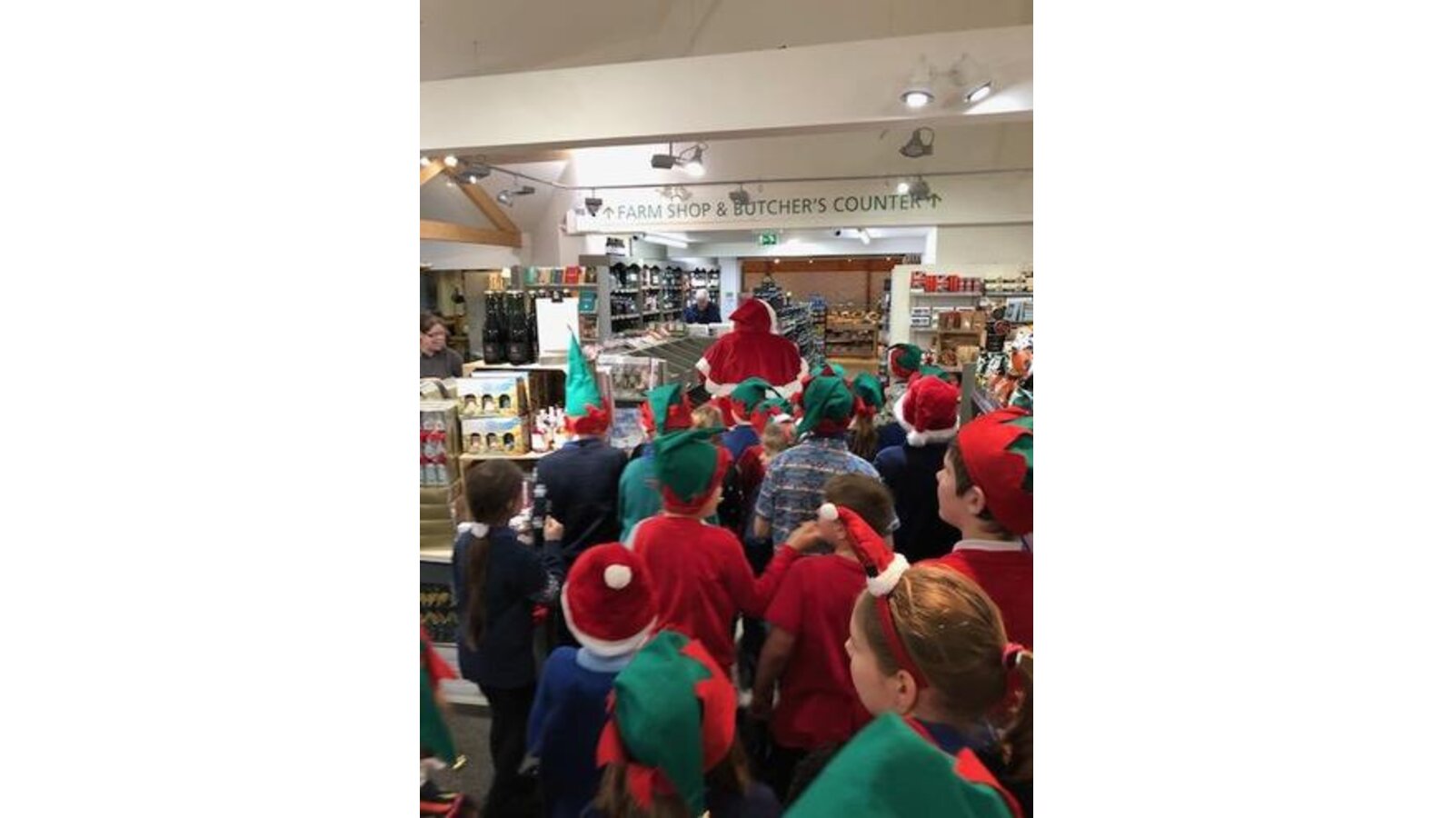 We visited Westmorland Services to sing Christmas songs in their entrance. We raised £144 for our singing from people who were passing by. To round off a lovely visit Father Christmas surprised us by popping in. He took us for a look round the shop and gave everyone a taste of some delicious Lancashire Cheese!