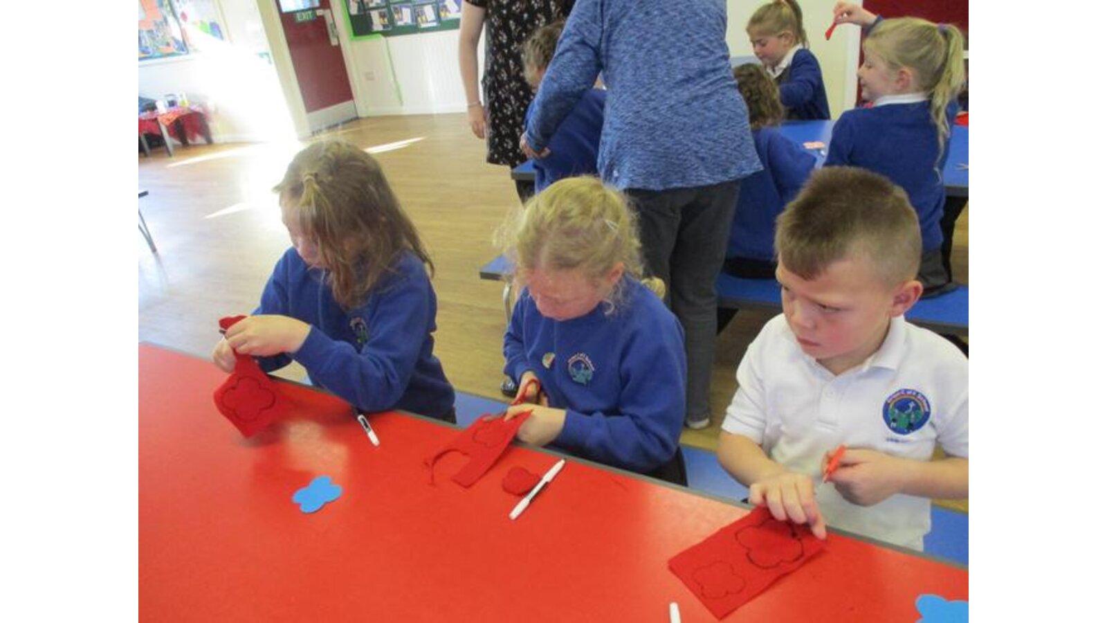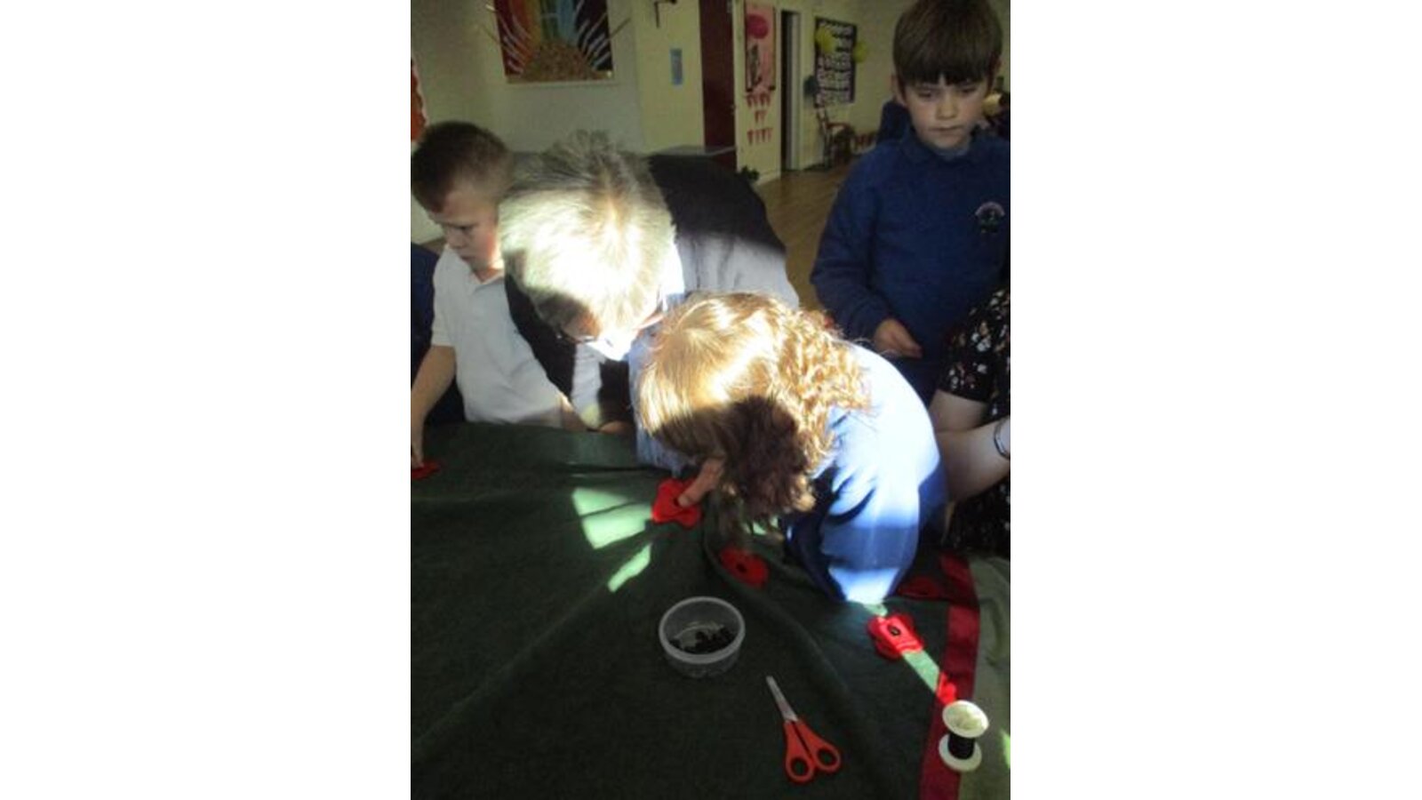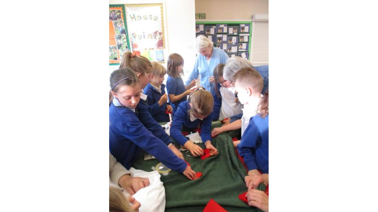 We worked with some members of the community to make poppies and then stitch them onto a new altar frontal for All Saints Church. The altar frontal will be used both in church and school for our Remembrance services. The finished worked looked beautiful.