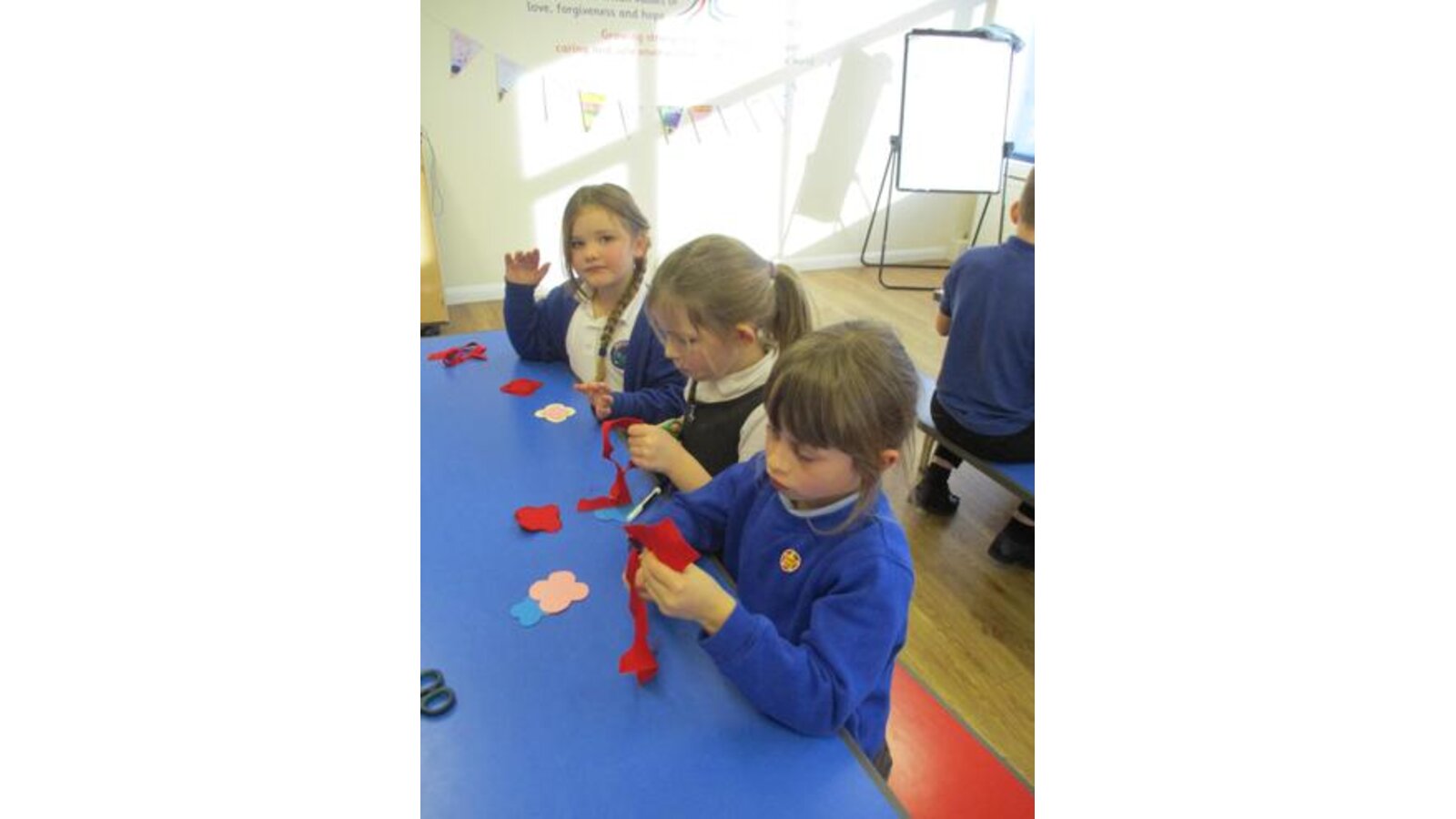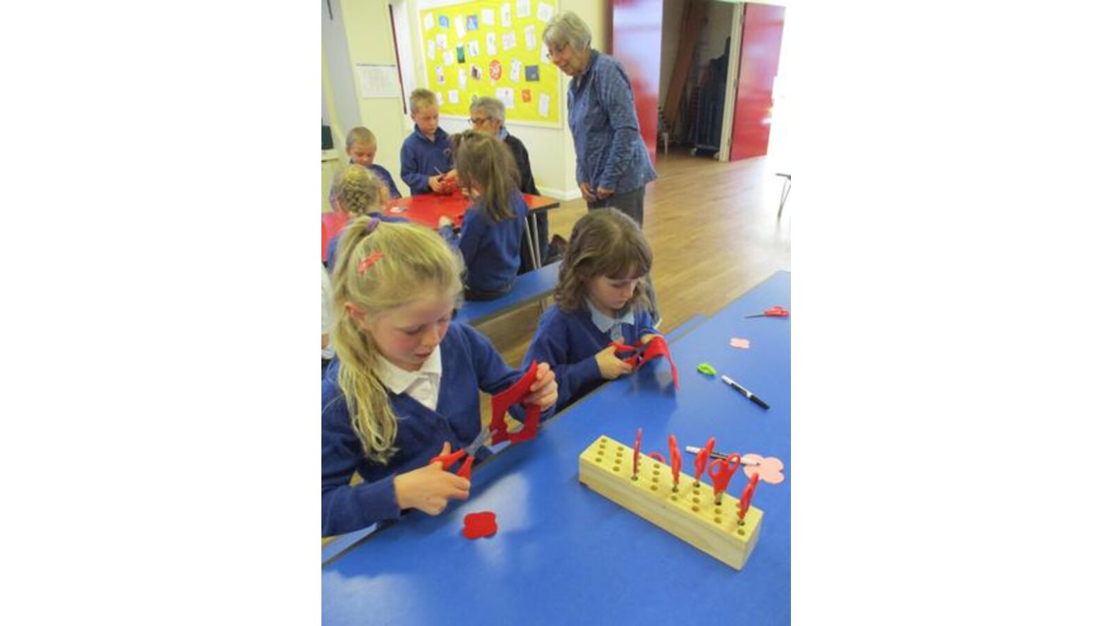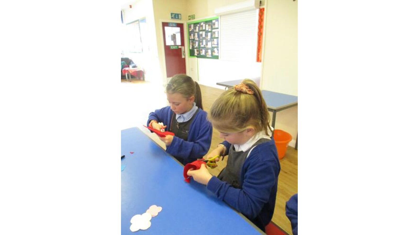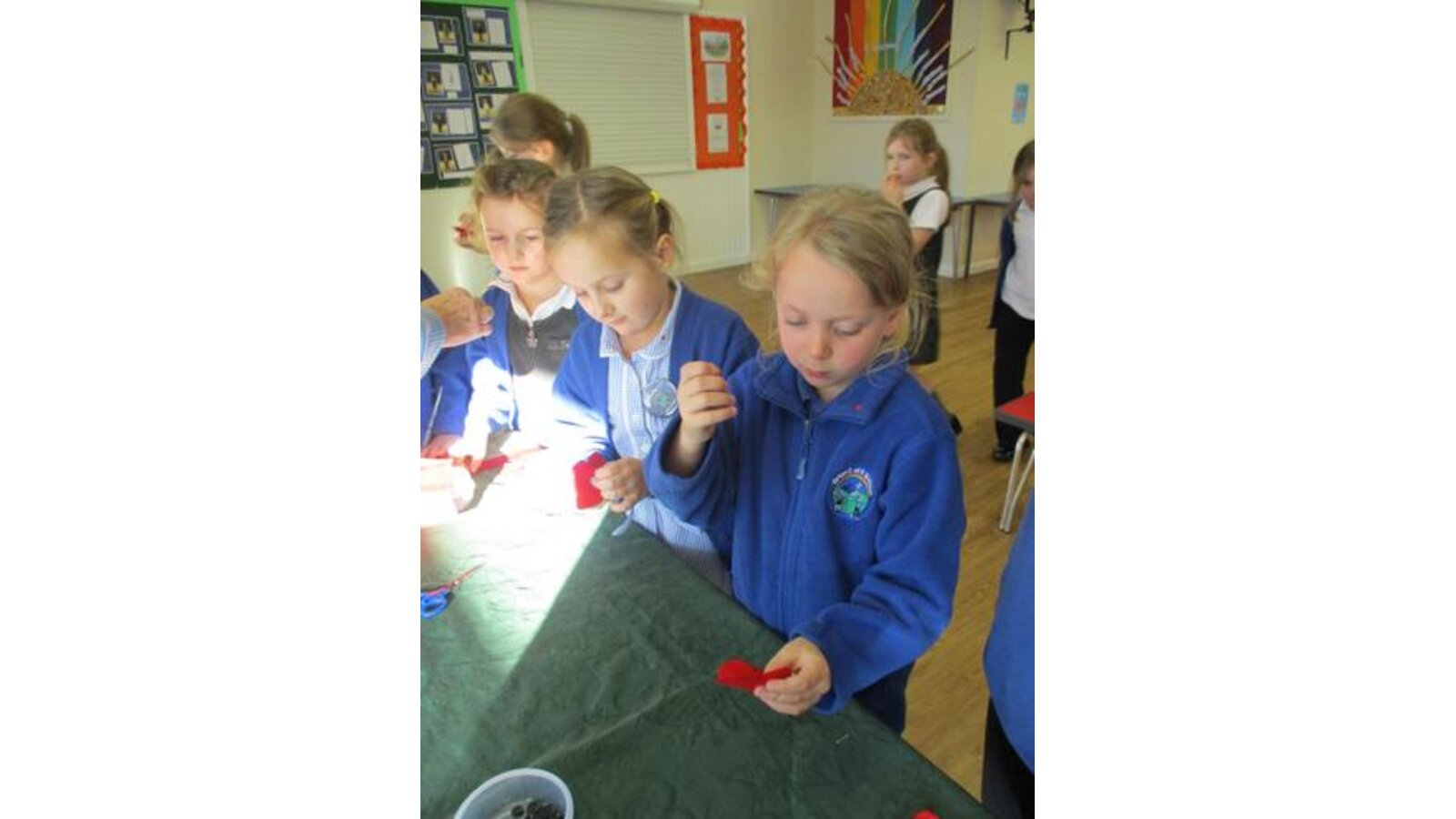 We worked with some members of the community to make poppies and then stitch them onto a new altar frontal for All Saints Church. The altar frontal will be used both in church and school for our Remembrance services. The finished worked looked beautiful.