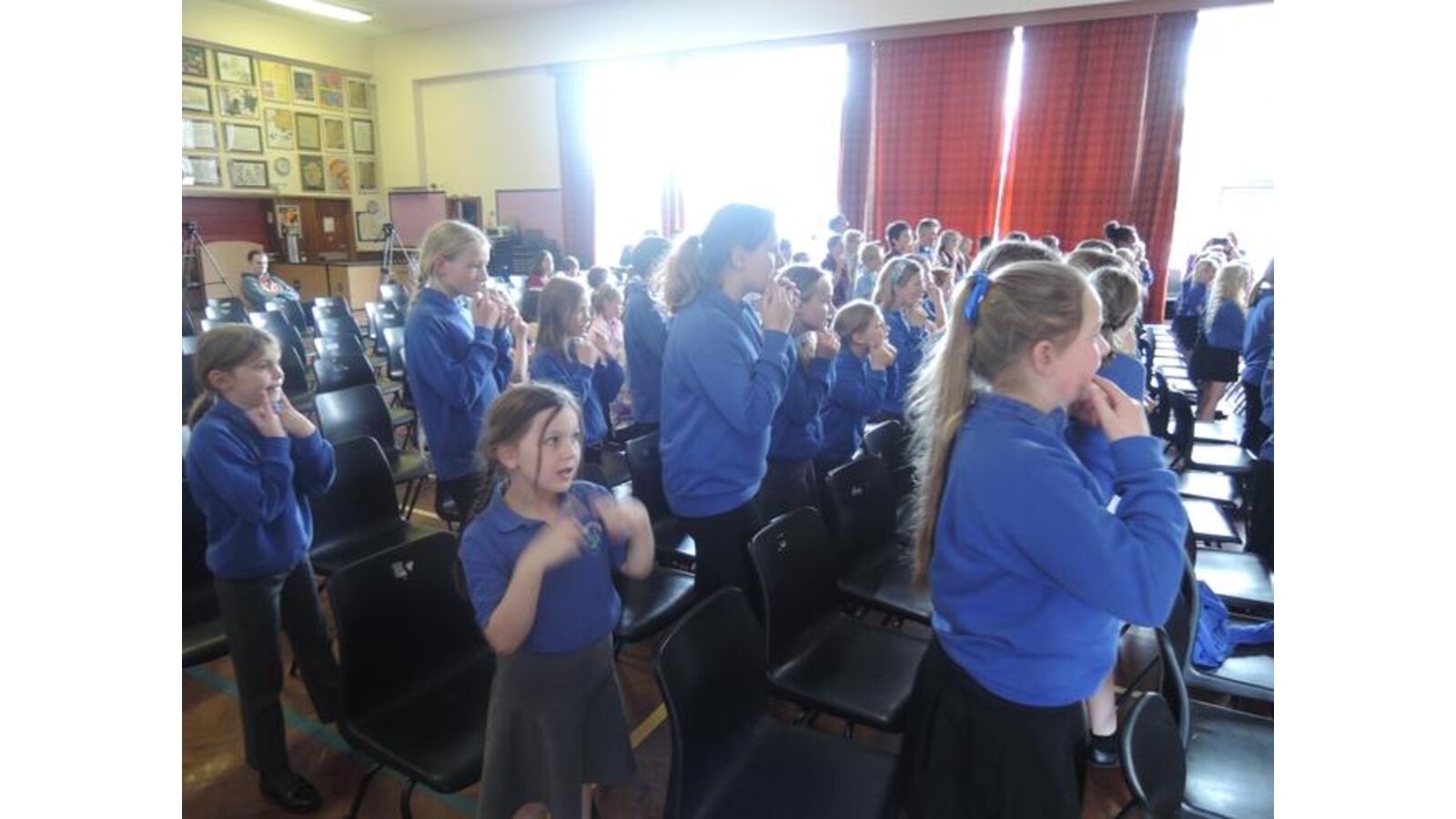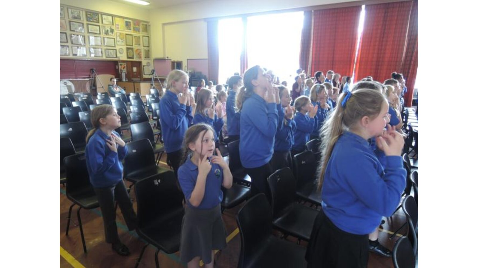 In their music lessons Class 2 learned some new Thank you songs from around the World with Miss Anderson. Miss Anderson had learned the songs from a friend called Tim in America. Class 2 videoed one of the songs to send at a thank you to Tim.