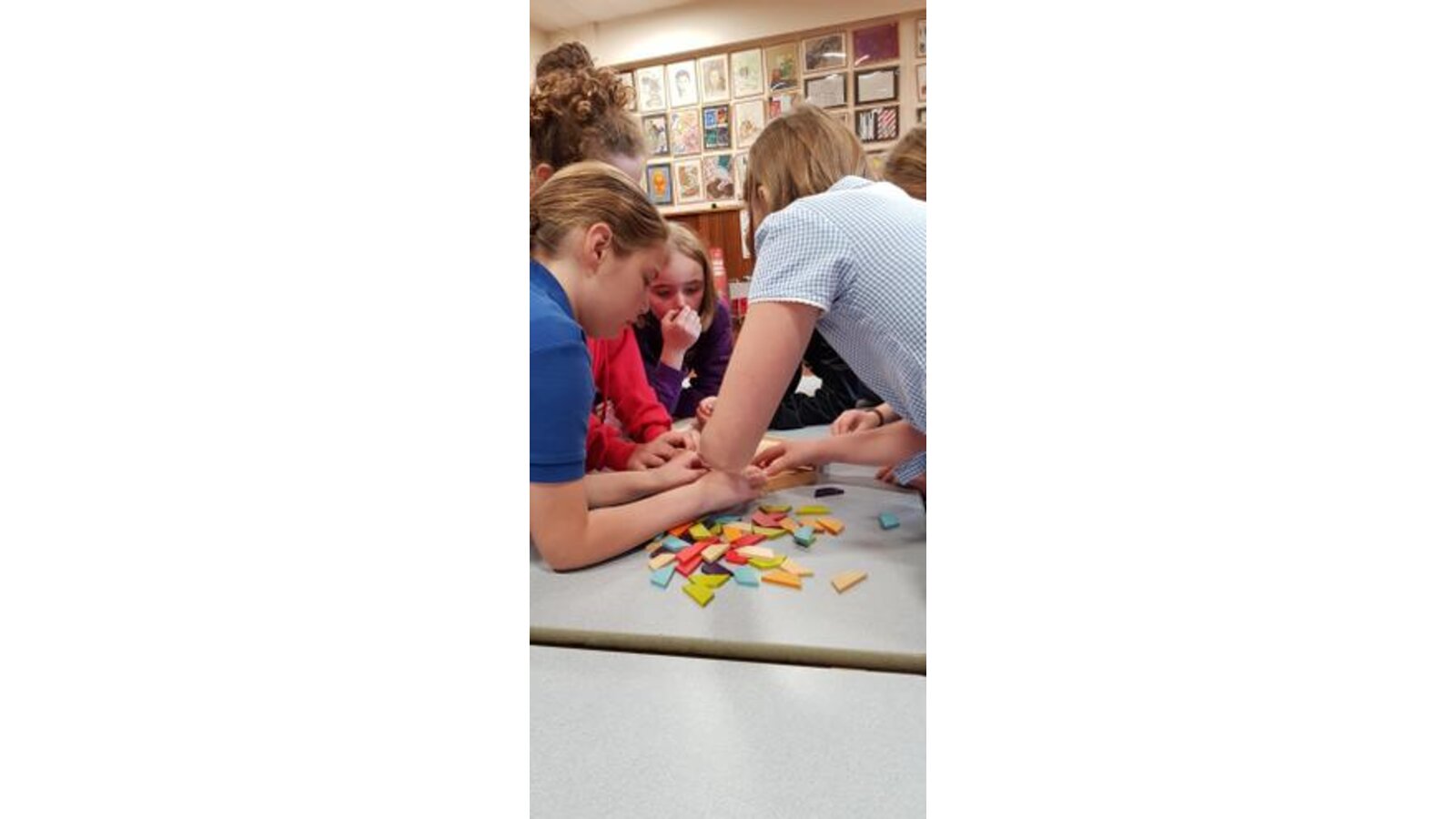 The morning began puzzle solving. It was all very competitive with groups working well together to solve a puzzle before moving on to another. The groups consisted of 3 Orton Children and 3 from Warcop school. Mid morning toast was served before the children were then given taster sessions in Hockey, Netball, Football and Rugby. It rained for some of the outside activities but no ones spirits were dampened ...the teamwork continued. Thank you KSGS for inviting us.